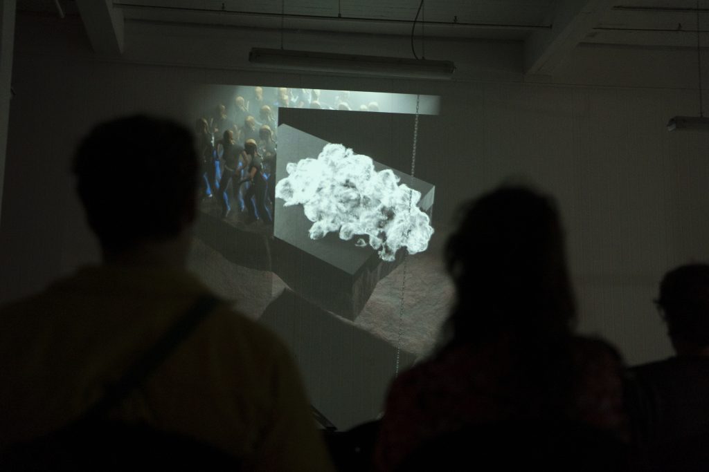 The site-specific video installation Time Tripping reveals synchronicities on the Katoenhuis grounds, spanning from the distant past to the far future. Through visual-spatial cues and 3D simulations of the site’s architecture, it presents the site in multiple times at once, merging these layers into new, shifting realities. Across these temporal layers, choreographies of elevation unfold: bodies carried by ascending currents of uplifting dance music, crates hoisted skyward, elk leaping, and water rising, highlighting continuities that resonate through time.